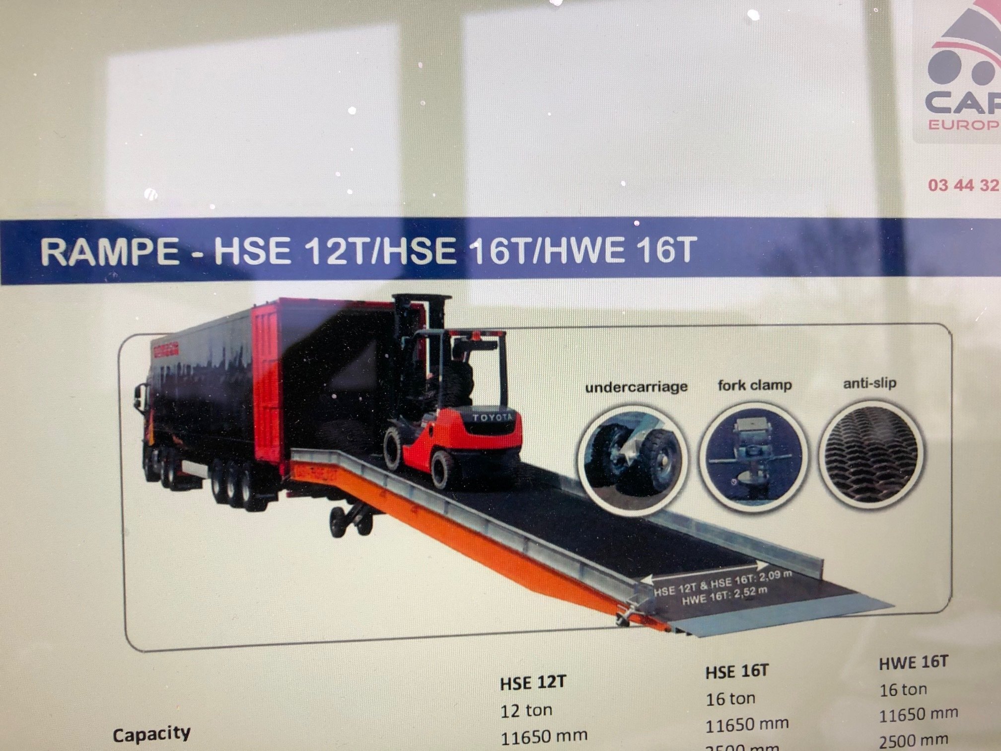| Détails | rampe de chargement avec levage électrique sur 2 batteries gel et manuel. Capacité : 16 tonnes longueur de la plateforme horizontale : 2500mm largeur intérieure : 2520mm hauteur ajustable 765-1850mm |