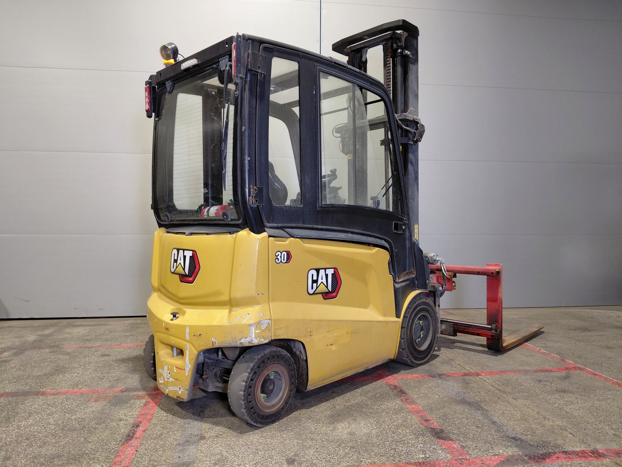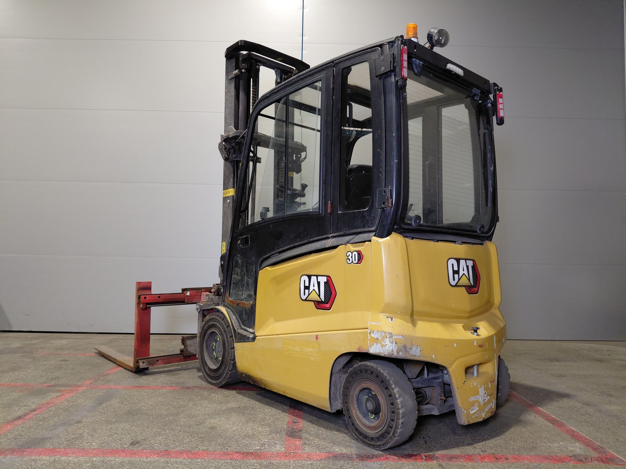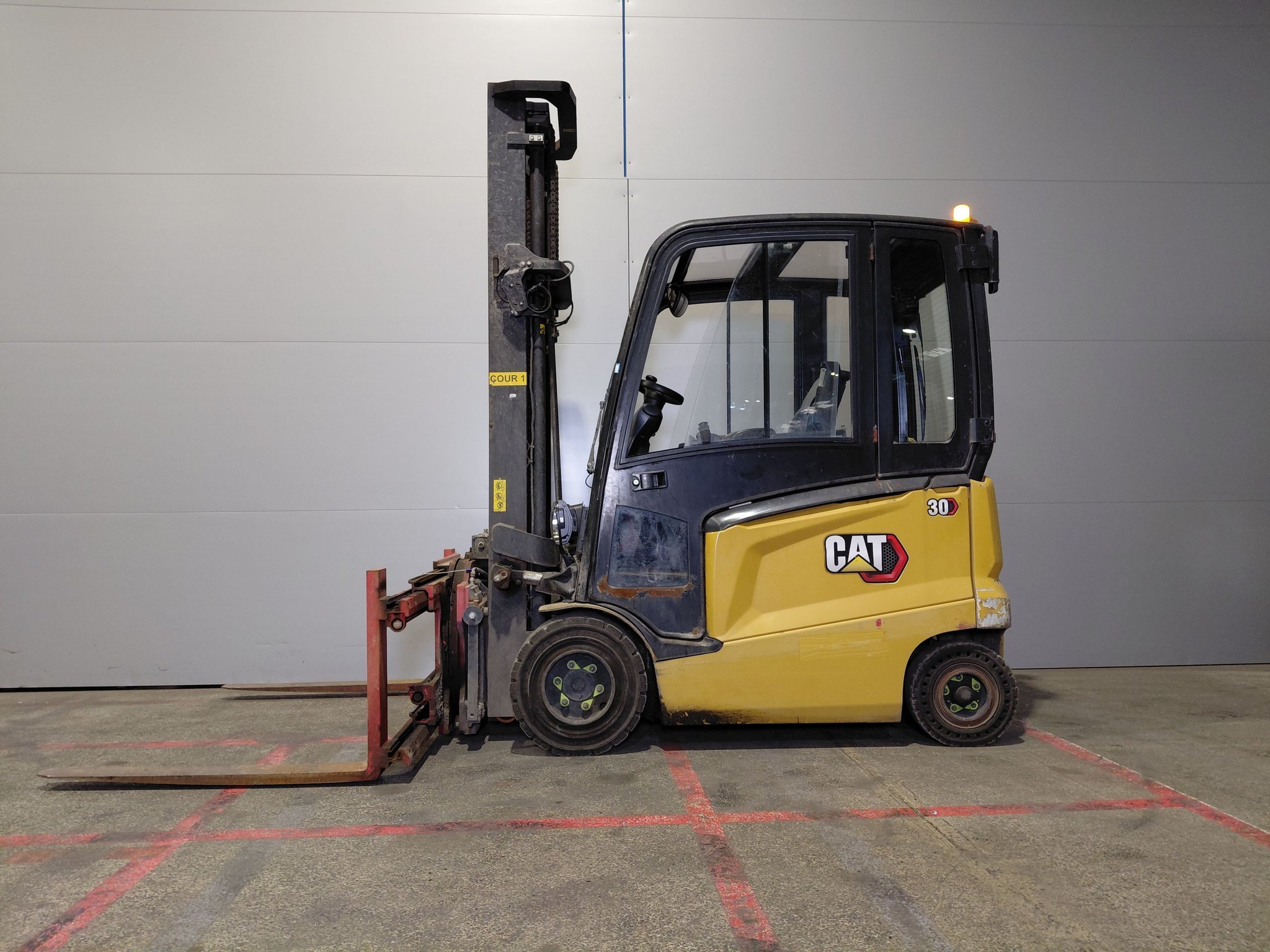 Retourneur 360° Cabine Électrofreins Écarteur de fourches 4 voies hydrauliques Chauffage Batterie plomb Éclairage de route à LED Mini levier Retroviseur panoramique Blue spot arrière Feux de travail arrière TDL rapporté Signal de recul Feu à éclat |