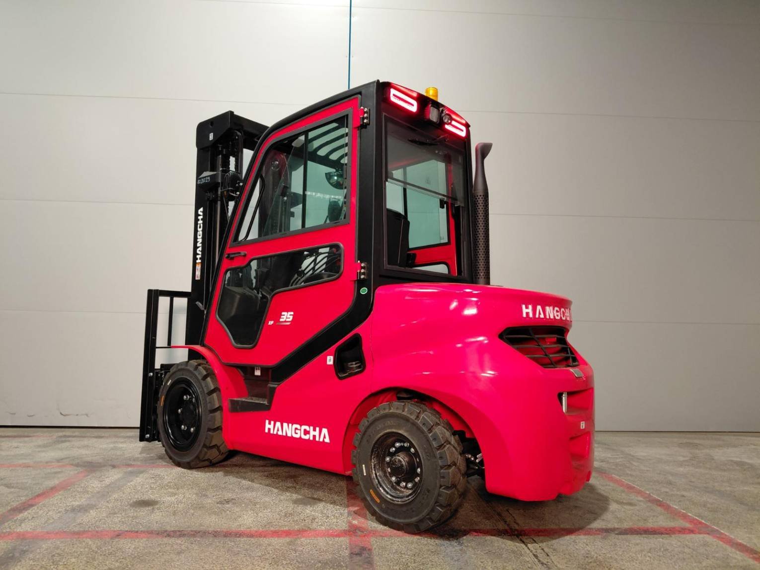 | Détails | 3.5t XF2 series forklift with XINCHAIdiesel engine Color: HANGCHA Red 4S-888/Black 2S-999 CPCD35-X2H7F1 4.7M Triplex Mast Zhengxin Solid Tyre 4th valve with lever HC Cabin(CE)XF (Same color as frame) Heater (Not on the door) 122*50*1150 IIIA fork SC29-15 Suspension seat with switch & armrest & Sequential Seat Belt Interlock System & belt (XF250-030000-G71) New high-mounted exhaust Rear Blue spot light LED HEAD LIGHTS Fan guard Cascade sideshifter fork positioner 65K-FPS-B198 Panoramic mirror Rear working light Rear handle USB charger plug Operator presence system-CE 2023-Standard Double sound insulating padding-Standard Nameplate of sideshift forkpositioner: 3500kg/500mm |